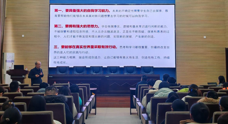 其次,他建议同学们在研究生期间要积极参与科研项目,通过实践提升专业技能;要多参与学术活动,勇于质疑和探索,培养独立思考的能力。