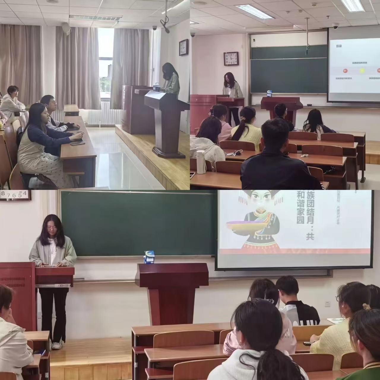 活动伊始,学员李雨席以循序渐进的讲解方式,为在场学员系统梳理了民族团结的核心要义,不仅帮助大家深化了对“民族团结月”意义的理解,更让学员们在专注聆听中明晰了民族团结事业的发展方向。此外还从“社会稳定是基石、文化繁荣是灵魂、经济发展是动力、国家统一是目标”四个维度,结合实例为学员们解析了民族团结与国家发展的紧密关联,让理论知识更具说服力与感染力。